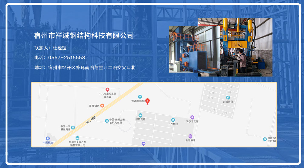 宿州市祥誠鋼結(jié)構(gòu)科技有限公司位于宿州市經(jīng)開區(qū)外環(huán)南路與金江二路交叉口北,公司是一家以建設(shè)產(chǎn)業(yè)化為目標(biāo),匯集大型鋼結(jié)構(gòu)廠房、彩鋼活動(dòng)房設(shè)計(jì)、制作、安裝施工一條龍服務(wù)的知名鋼結(jié)構(gòu)公司。公司現(xiàn)有固定資產(chǎn)1000余萬元、流動(dòng)資金近千萬元公司。現(xiàn)有員工40人,大專以上學(xué)歷30人,其中高級(jí)工程師1人、工程師2人、會(huì)計(jì)師1名。各工種持證上崗率100%。高效化的年青團(tuán)隊(duì)為公司帶來了蓬勃發(fā)展的動(dòng)力,全體員工以務(wù)實(shí)的態(tài)度,拼搏的精神,創(chuàng)造著企業(yè)的每一天。      公司組織結(jié)構(gòu)嚴(yán)格按現(xiàn)代企業(yè)制度設(shè)計(jì),管理機(jī)構(gòu)設(shè)置合理,制度完善,各部門分工明確...